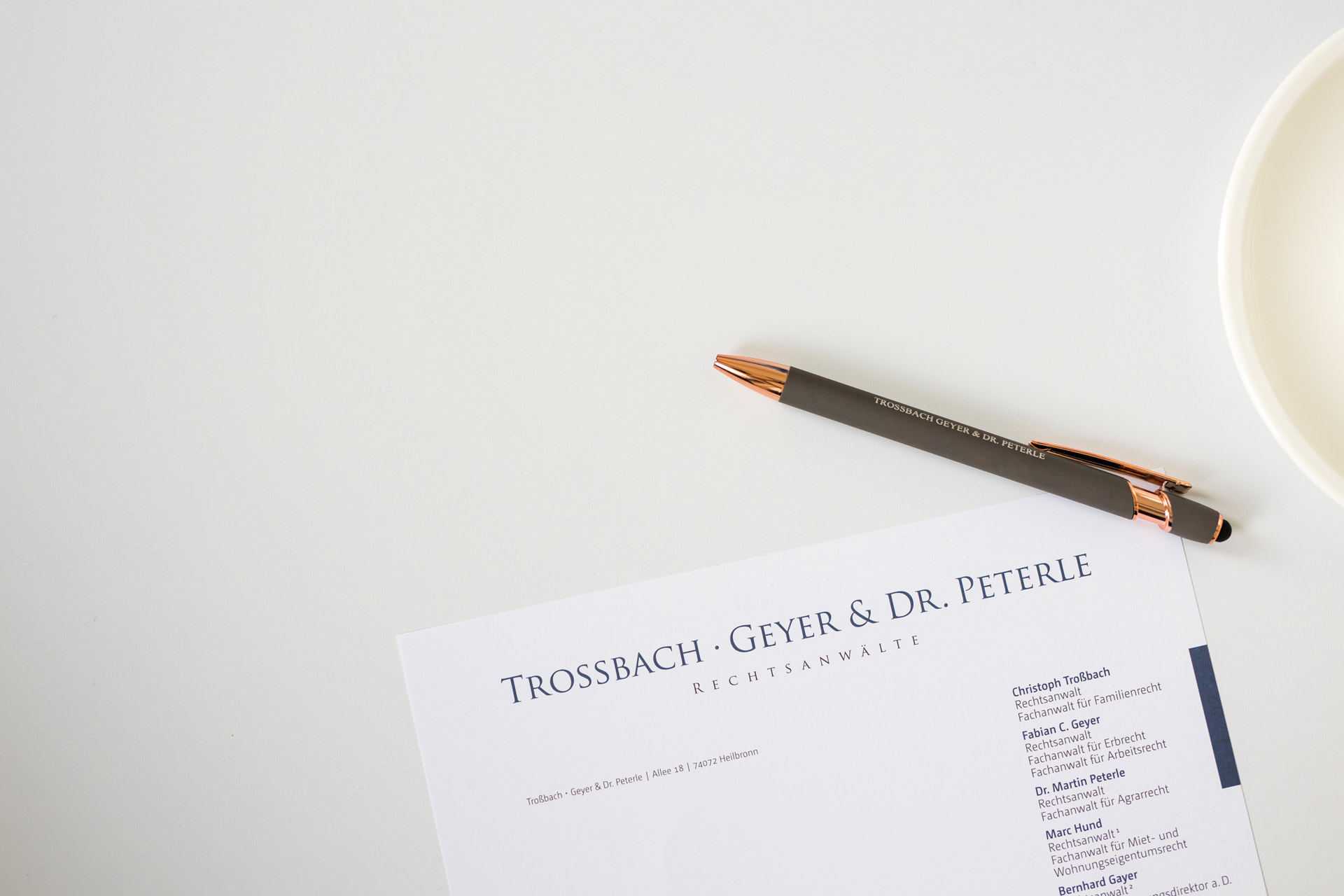 TROSSBACH · GEYER & DR. PETERLE berät mittelständische Unternehmen und Privatpersonen in ausgewählten Rechtsgebieten. Daneben ist die Kanzlei auf das Agrarrecht und das Weinrecht spezialisiert.
